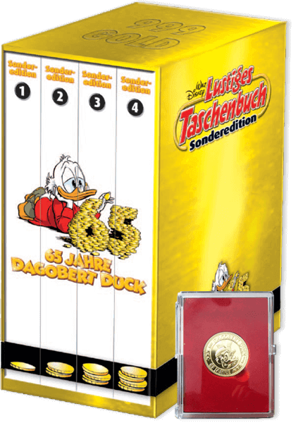 Die hochwertige limitierte Münzbox enthält alle vier Jubiläums-Bände mit Sonderfolie und Prägung in einem hochwertigen Schuber.